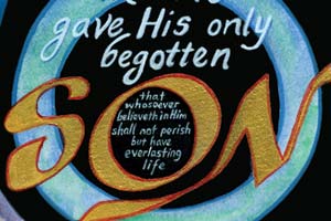 This view shows part of the Tetragrammaton in the diamonds. Out of respect to Jewish tradition, the letters are only included on high-quality prints. They are removed on printed matter that might be eventually discarded..